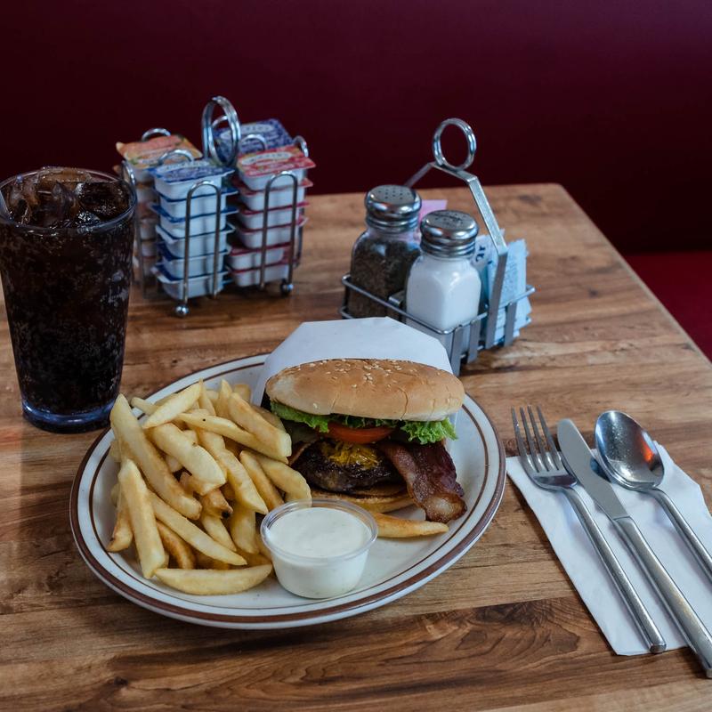 Our grilled ground round patty served with three eggs any style, hash browns, and toast.